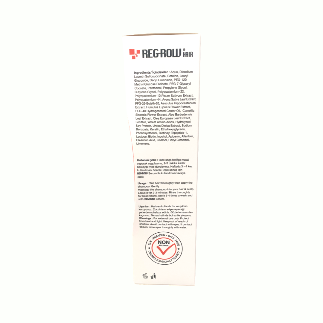Regrow Loss Shampoo is derived from natural ingredients found in fruits and vegetables. It increases blood flow under the scalp, dilates blood vessels and increases circulation around the hair roots, nourishes the roots, and induces development.